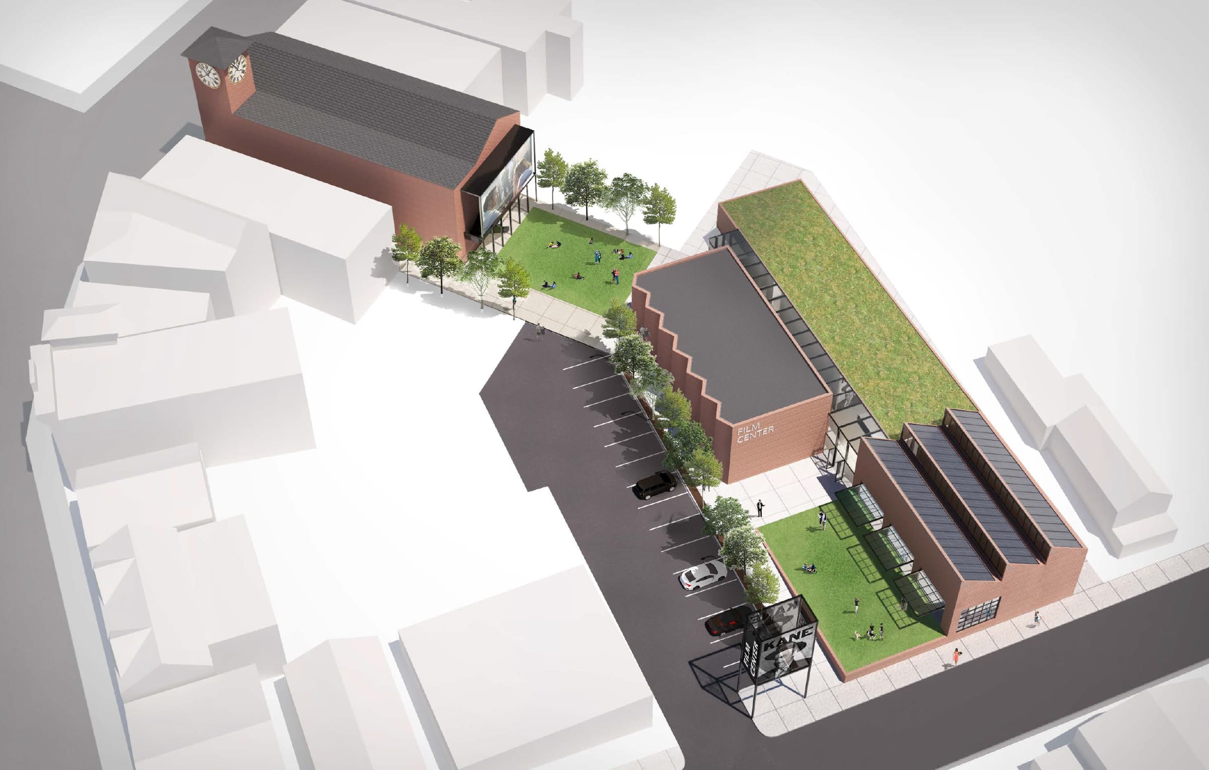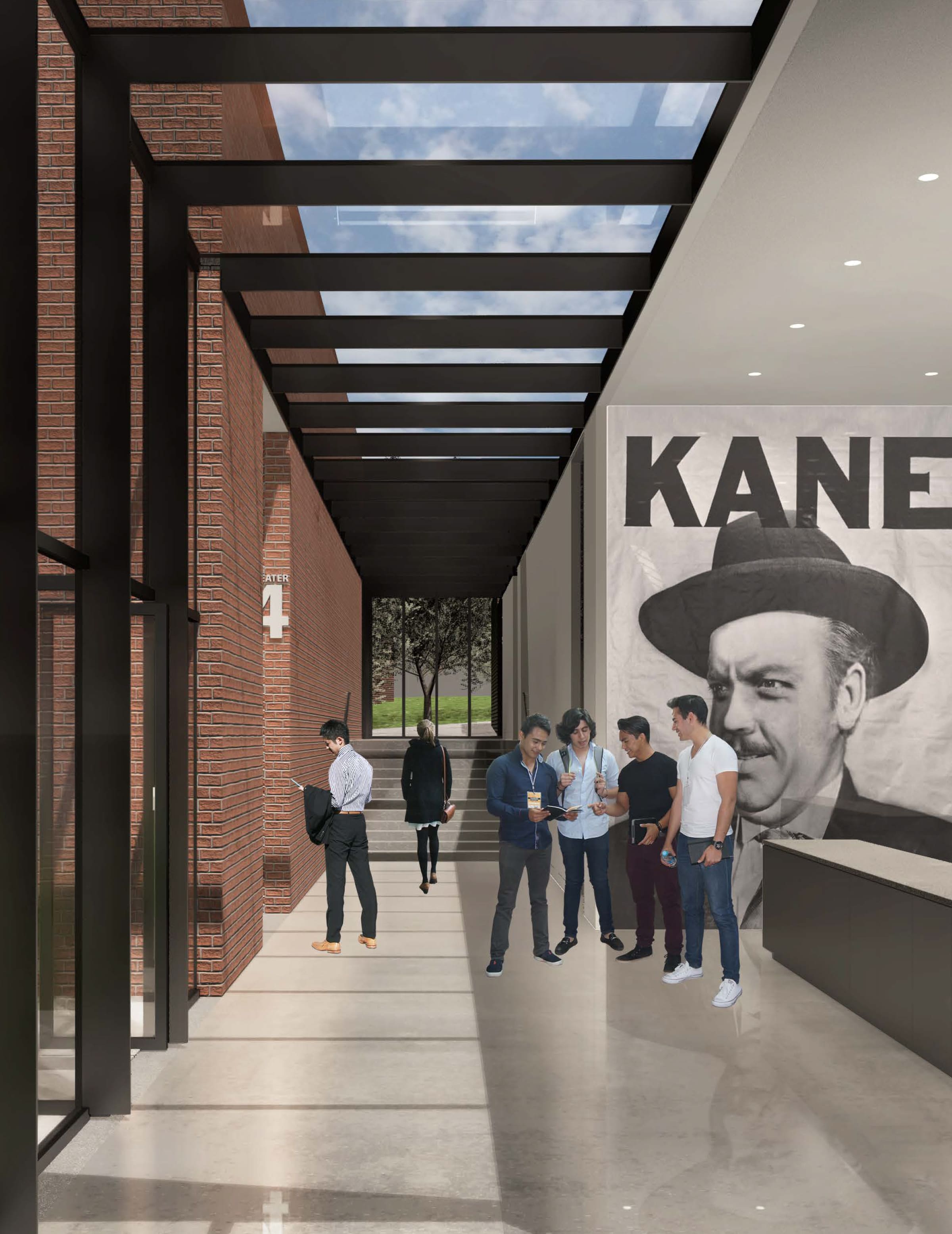 This design proposal was conceived as the basis for a feasibility study. The project envisioned a new free-standing cinema arts complex to supplement an existing multi-screen art house movie theater. The new campus plan concept included public spaces for free outdoor screenings and for community oriented events, a new state of the art theater for cinema and live presentations, an indoor event space that could be used for Cinema Center related functions or as an income generating space, classrooms, an animation studio, as well as administrative offices and support spaces.