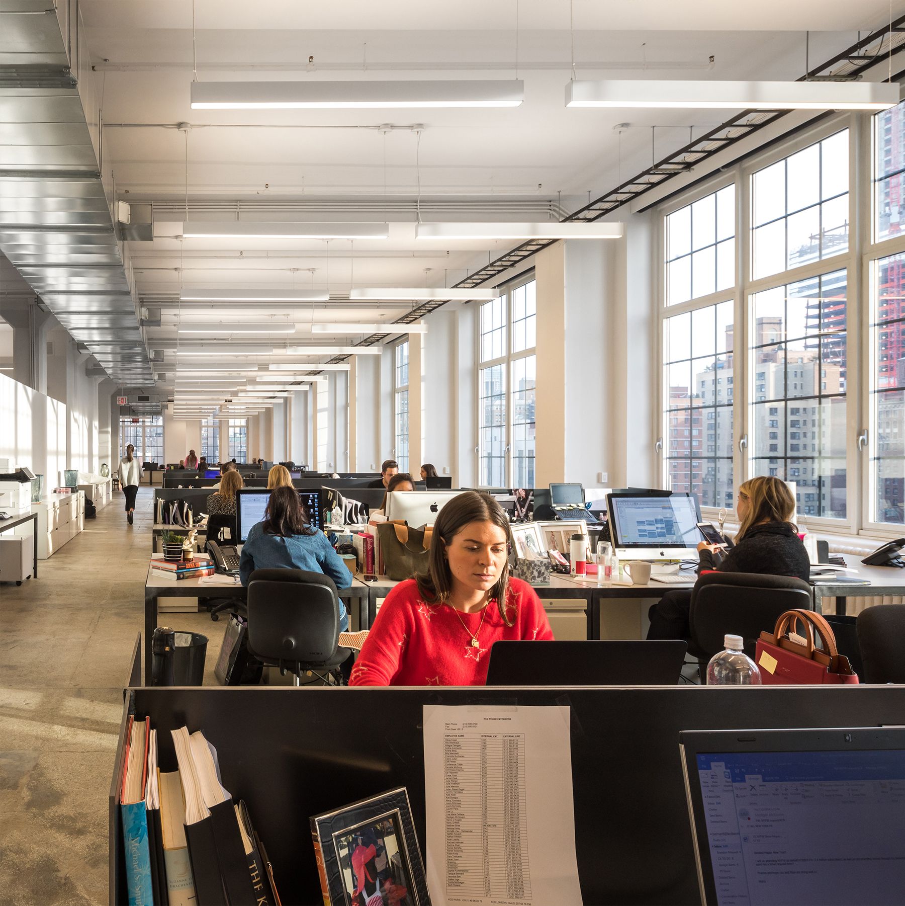 janson scuro designed this 10,000 sf loft-like office space for KCD’s New York corporate HQ. KCD, the world’s leading fashion industry PR and events firm is located at prestigious 475 10th Avenue, in the bustling far west side Hudson Yards area.