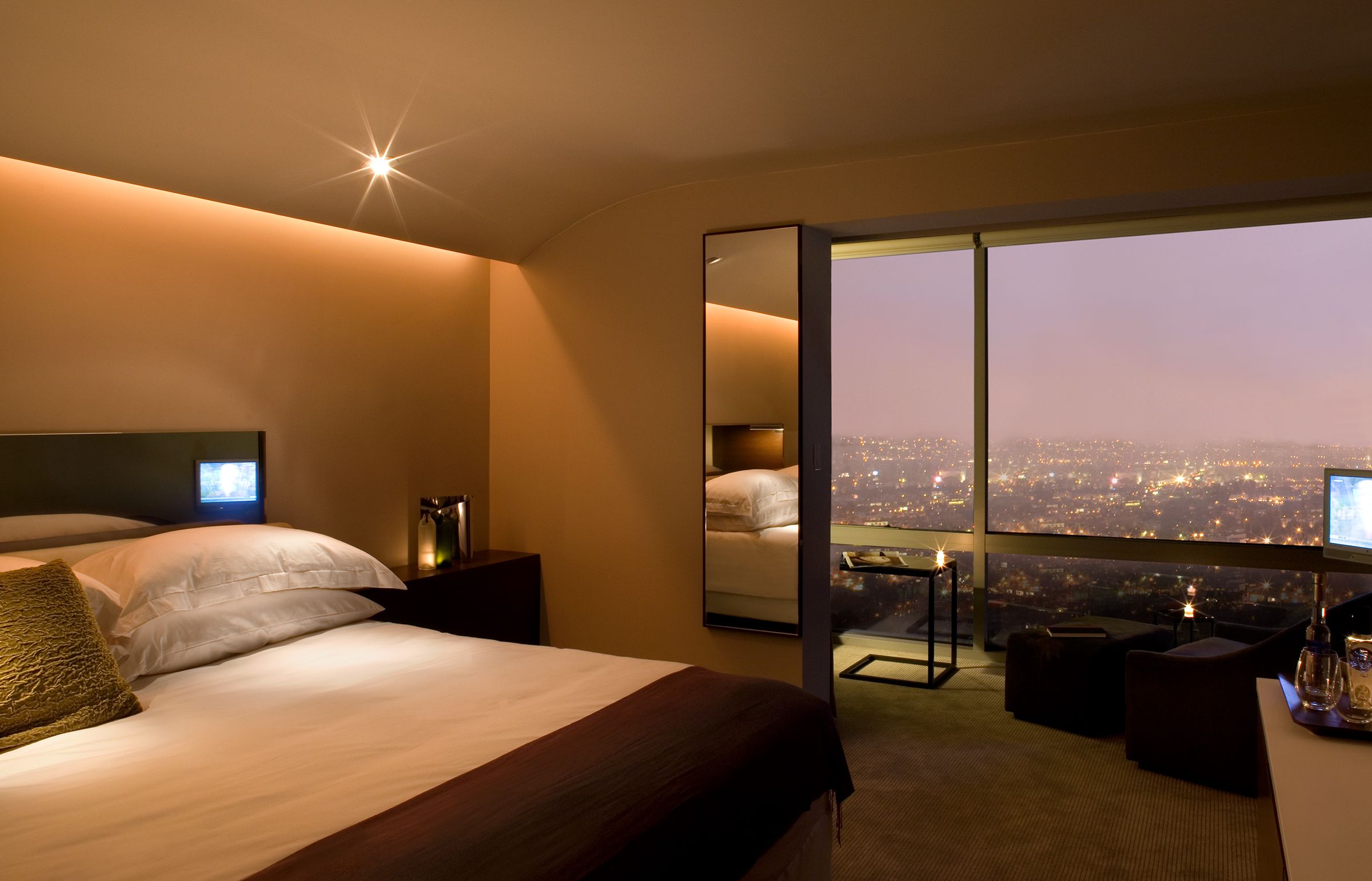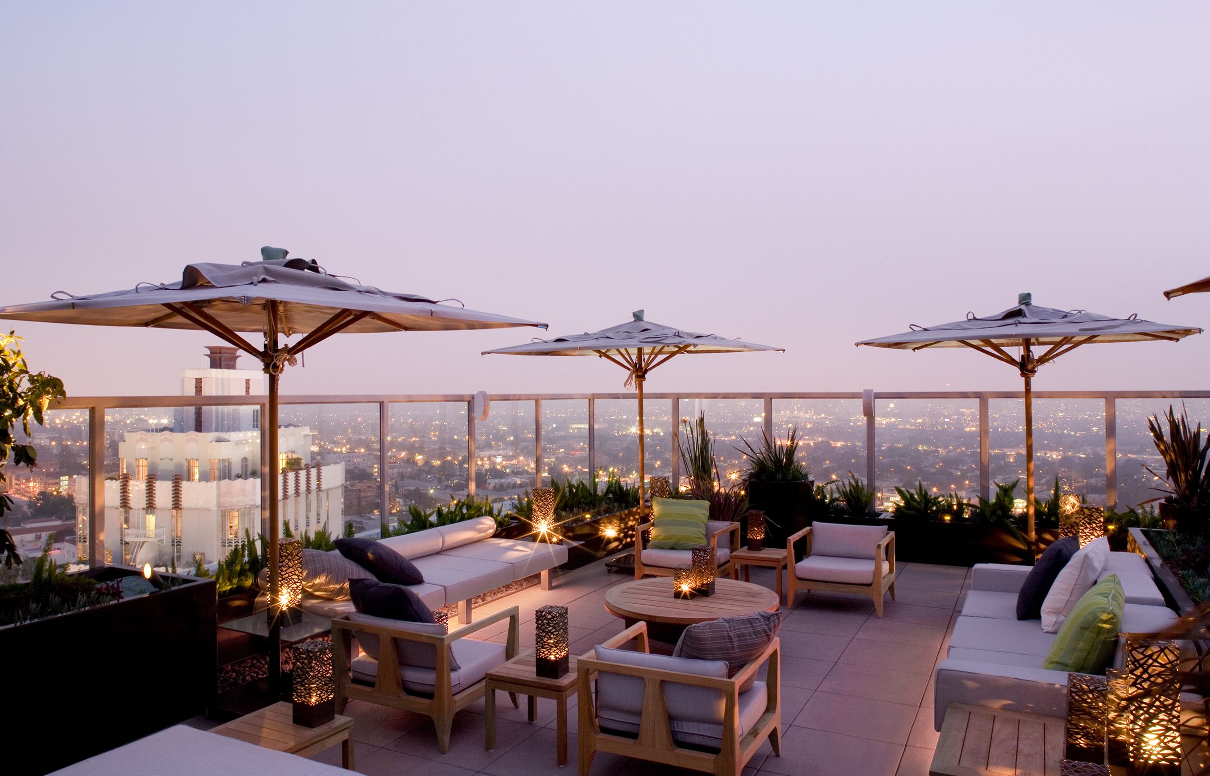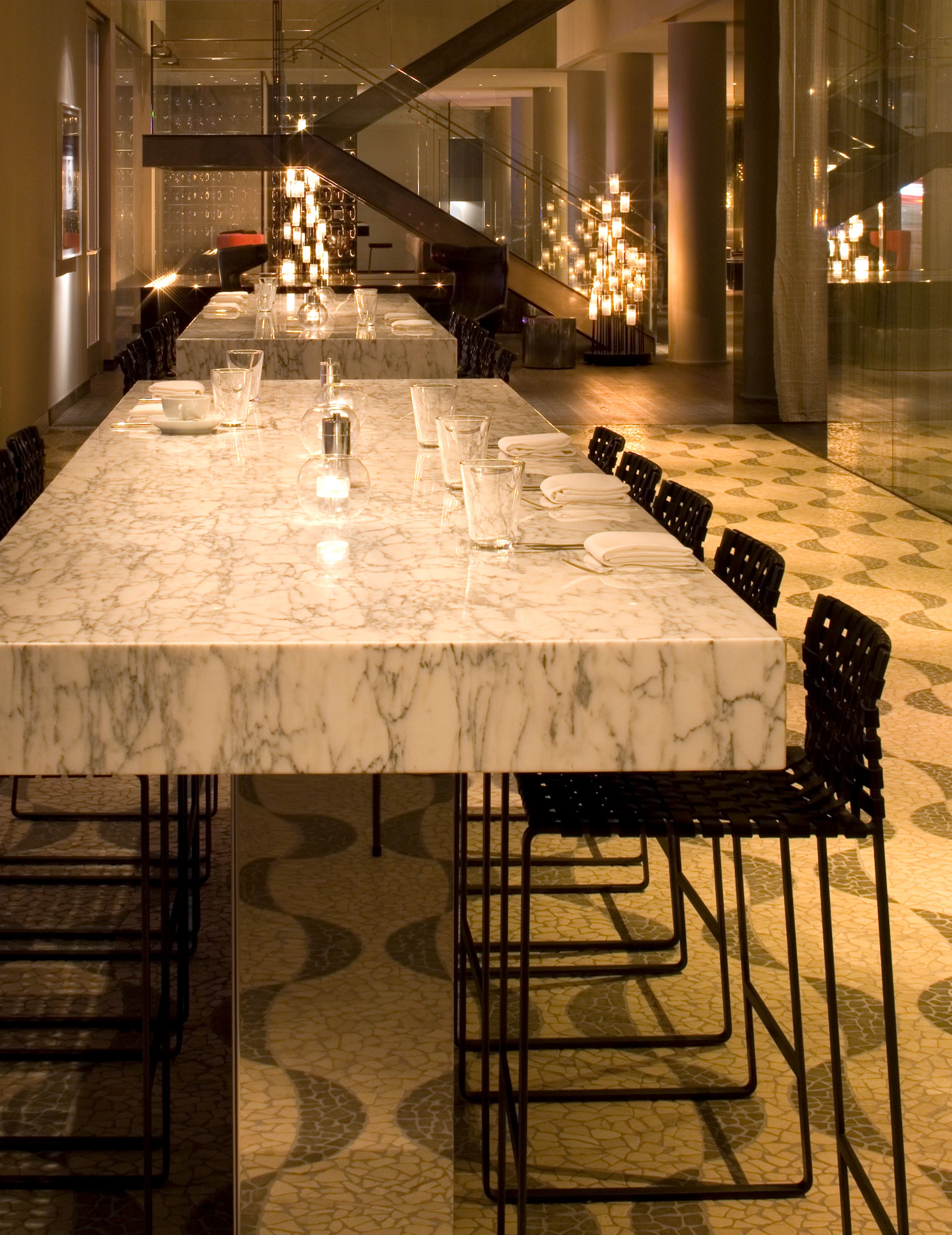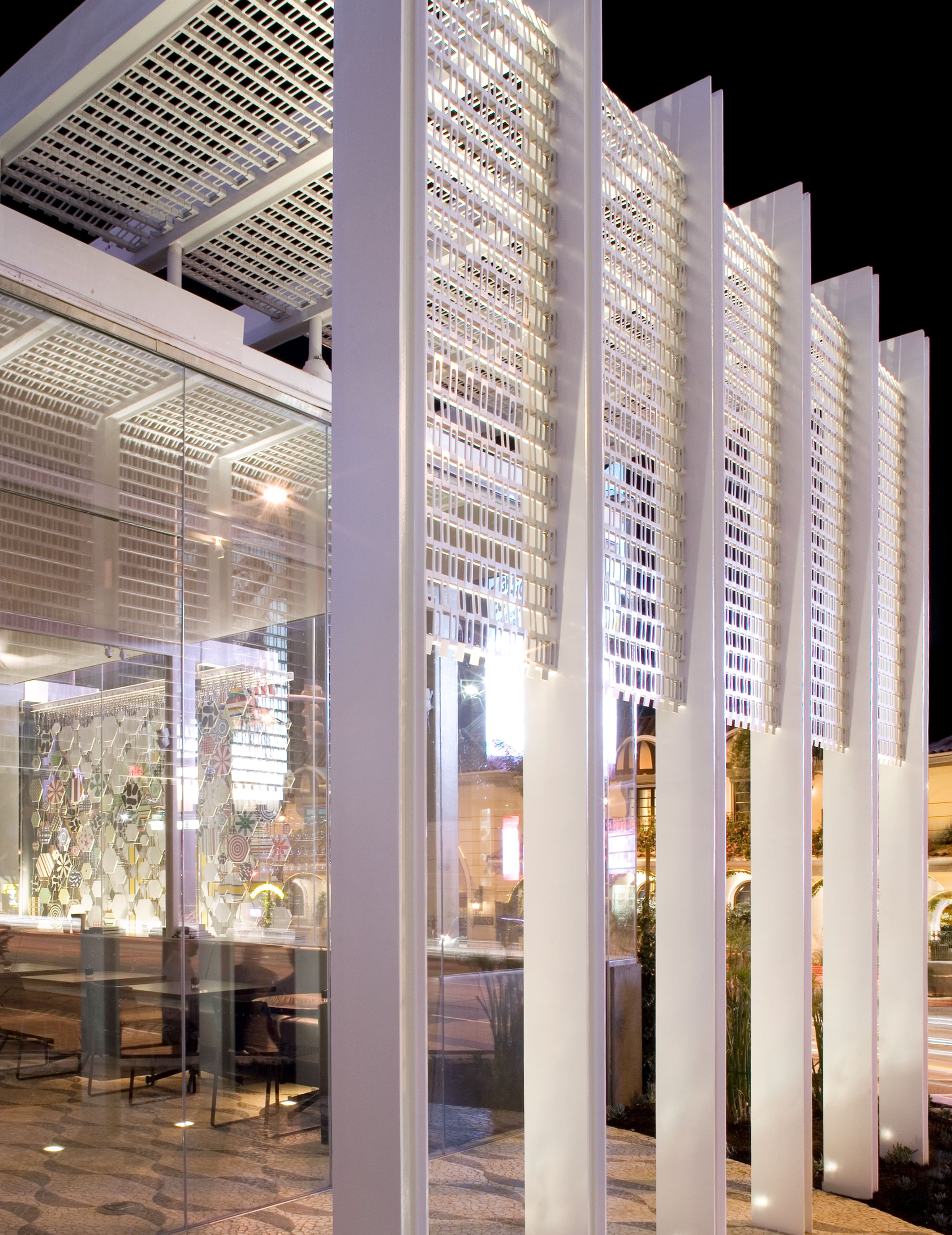 Begun in 2004 as a renovation of Los Angeles’s Continental Hyatt House (once a Sunset Strip hangout for rock-and-roll royalty), this project became the American debut of Hyatt’s Andaz concept, and an entirely new scheme — conceived as an icon for an emerging brand — replaced the original notion. Inspired by the mid-century aesthetic of the 1960s property, the ultimate design pays homage to such masterful L.A. modernists as Richard Neutra and Pierre Koenig. It encloses the balconies of the west-facing rooms in glass to reinvent the building’s Sunset Boulevard façade, expanding those rooms into mini-suites with impressive views. A new steel-and-glass pavilion at the base of the hotel’s tower, with a site-specific installation by artist Jacob Hashimoto, houses the hotel’s restaurant and simultaneously serves as a new marker for the property on Sunset.