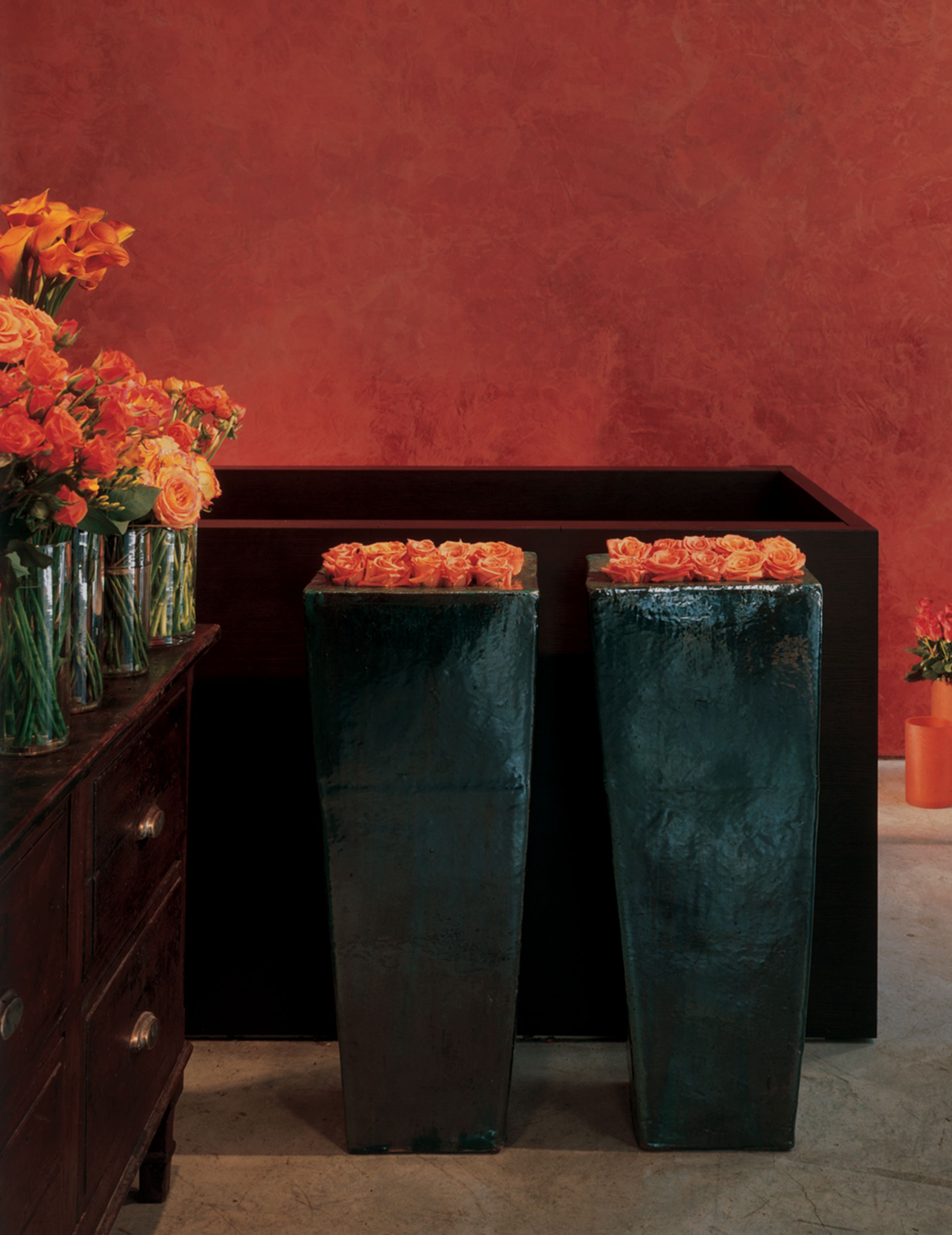 This floor-through renovation of Starwood Hotels & Resorts’ original W Hotel encompasses an expansive 24,000 square feet, including a spa, a gym, men’s and women’s lounge and locker facilities, three retail spaces, 11 guestrooms and four spa suites specifically designed for guests focusing their stays on health and wellness. On the northeast corner of the street level, a satellite of the well-known New York florist Bloom puts the theatricality of flower arranging at center stage, giving customers a window into the artistry. Adjacent to Bloom is the entry for the Bliss 49 Spa, as well as its salon and retail outlet. Just beyond lie dedicated elevators that deliver clients directly to the fourth floor, which is exclusively devoted to spa services and spa suites.