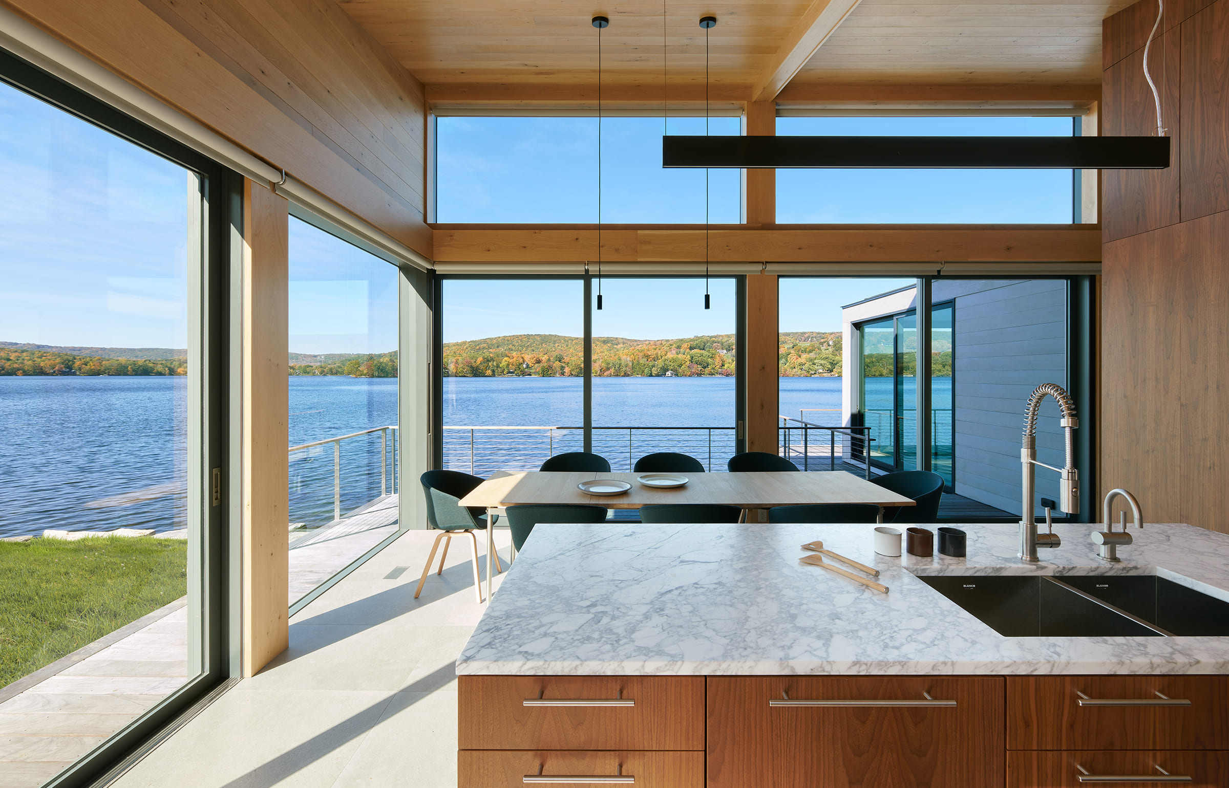 This lakeside pavilion is the first phase of an estate plan in the town of Washington, CT. The pavilion replaces an obsolete 19th century boathouse with a new structure designed for lakeside dining and entertainment. The structure is discretely nestled into a hillside, allowing for privacy from the adjacent road. Facing the water, the structure is composed of steel, timber and glass and is designed for maximum exposure to daylight and lake views.