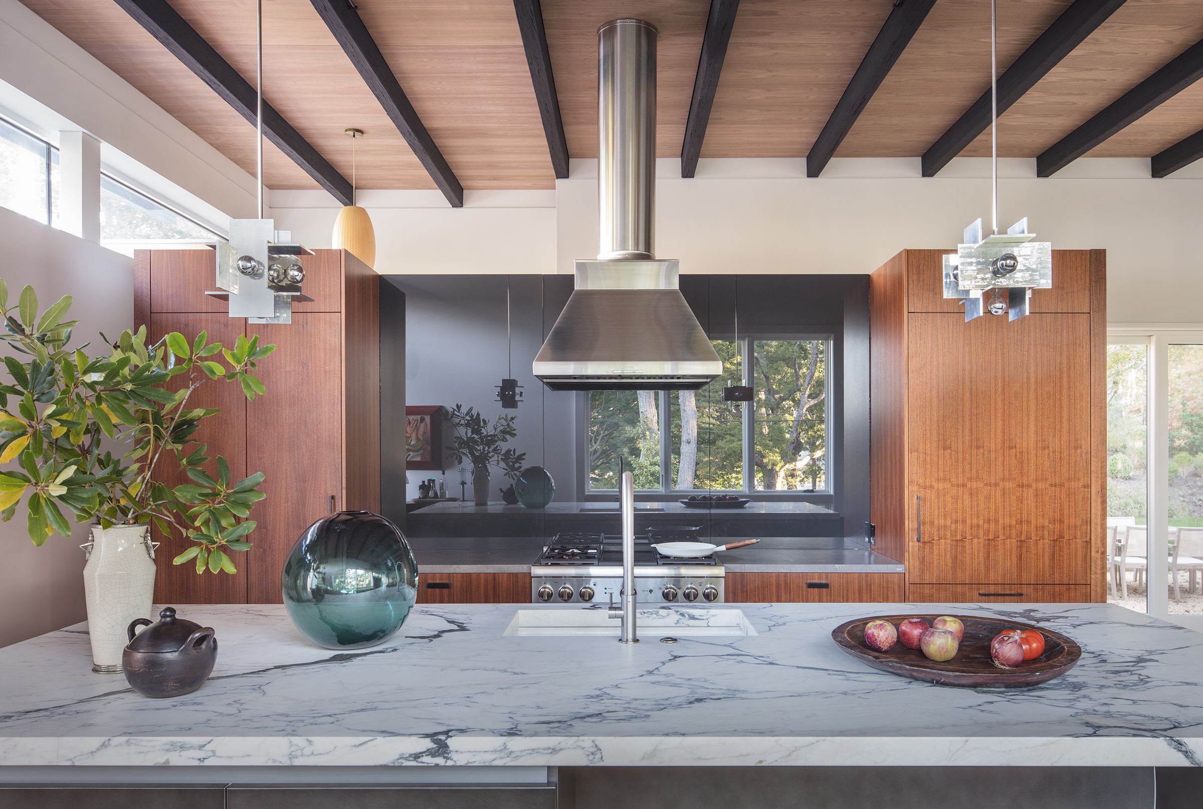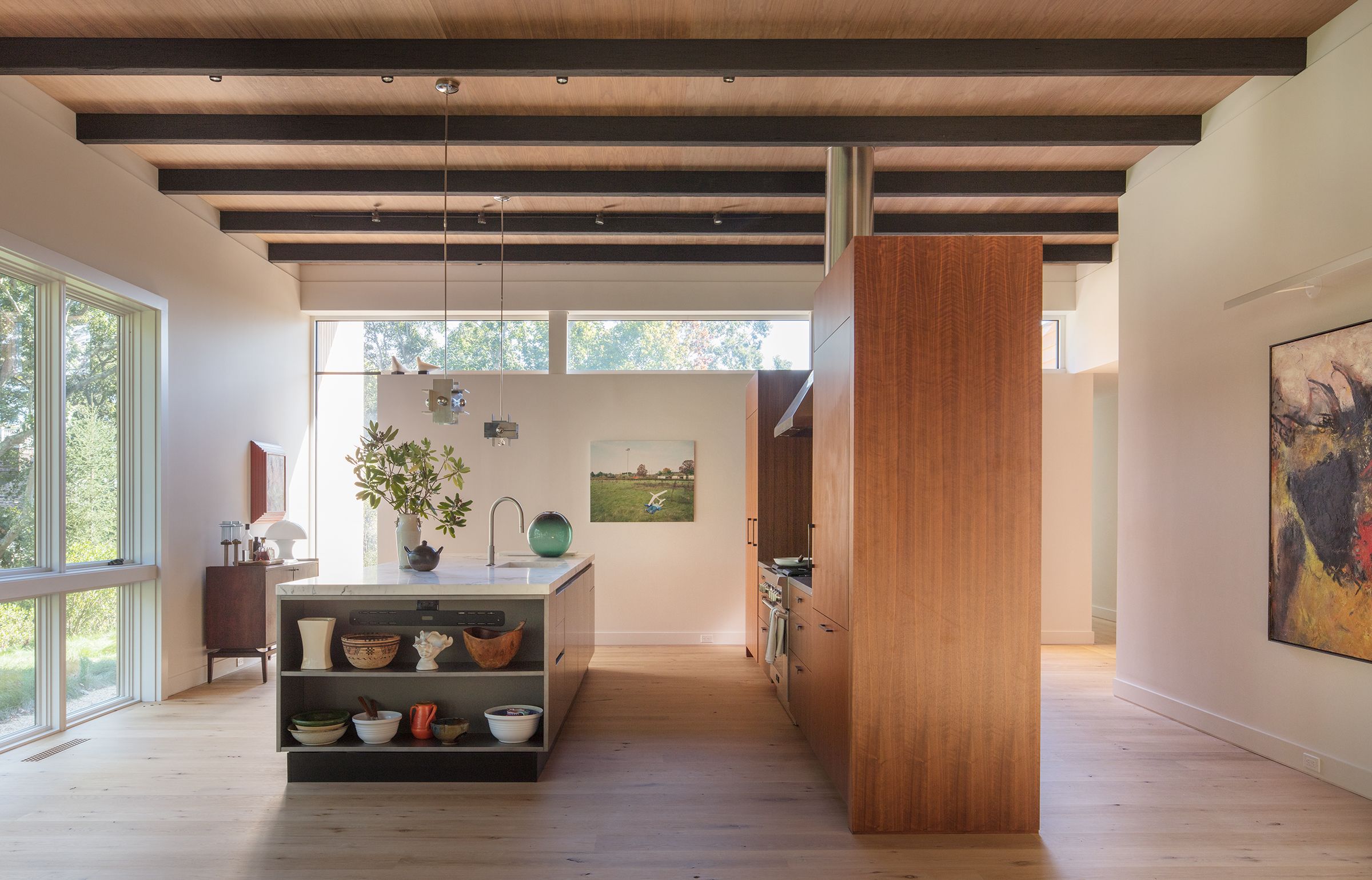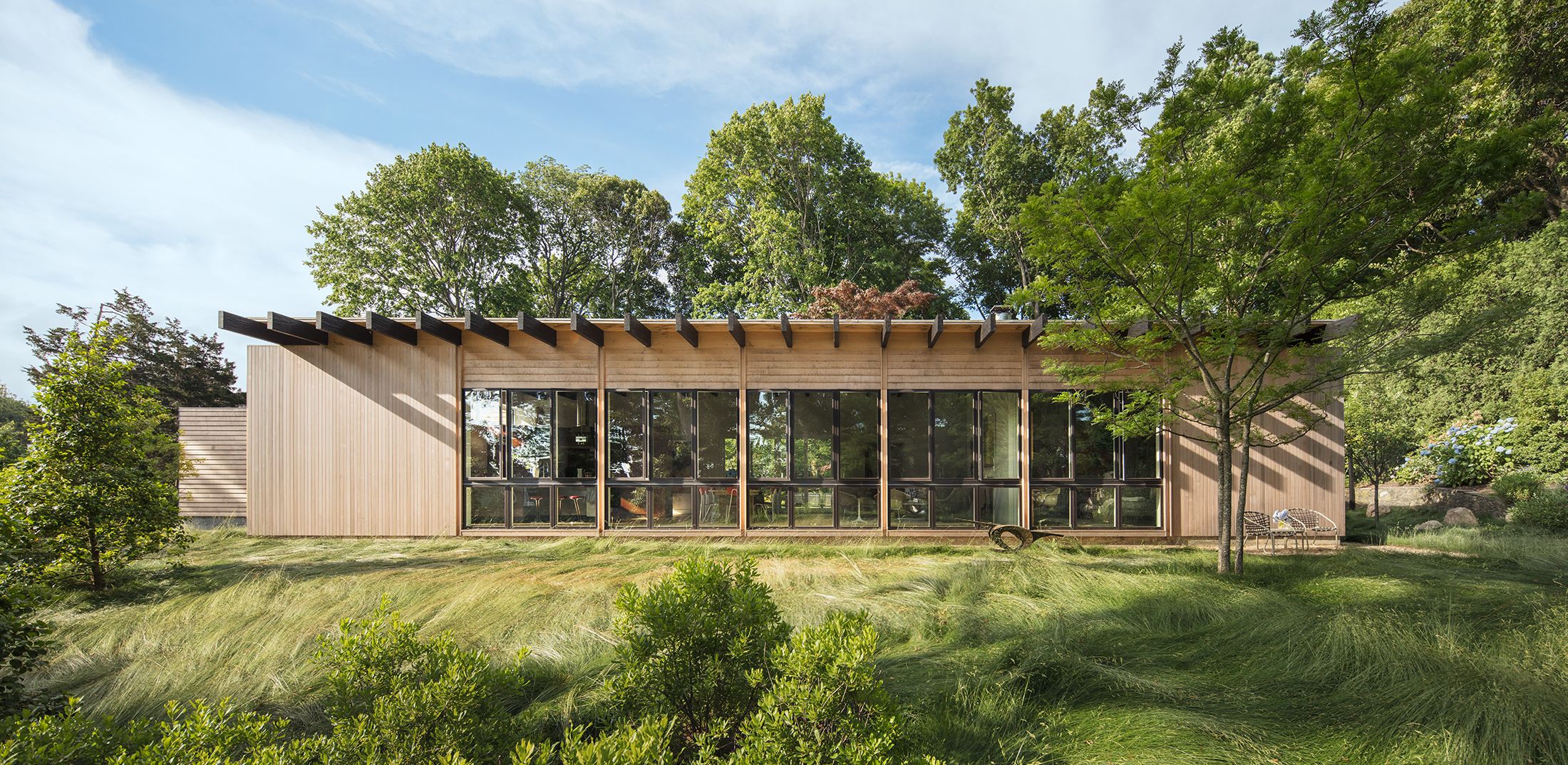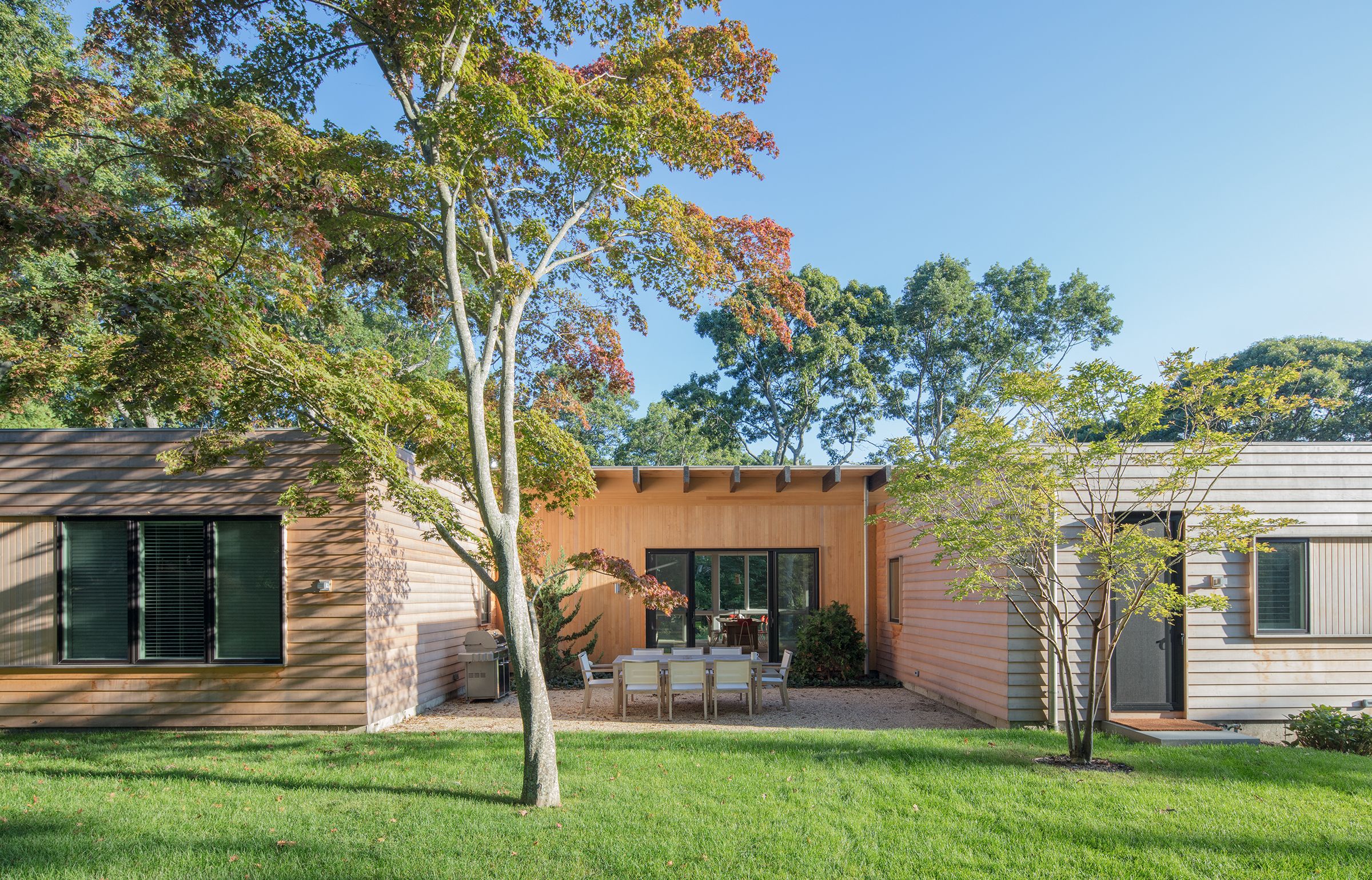 This 3,000 sf private residence sits just outside of the village of Sag Harbor, NY. The house is situated on the highest point of the property to take advantage of the water views. It is comprised of three volumes, the Great Room, featuring kitchen, dining, and living areas, the Master Suite, and the Guest Wing. A lap pool and an adjacent courtyard provide space for outdoor entertaining.