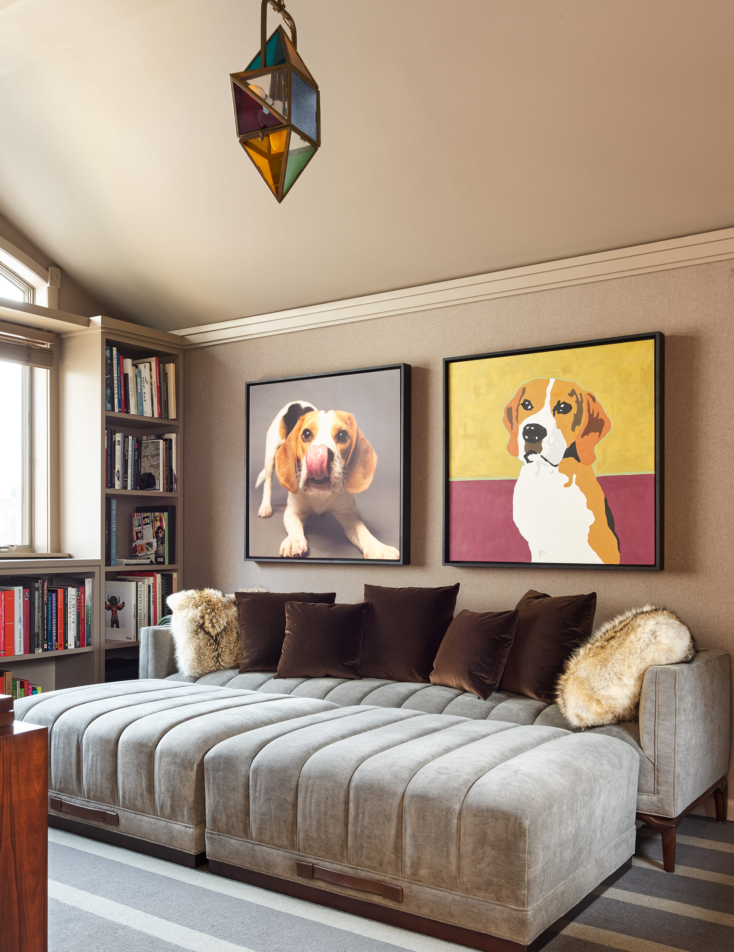 This unique New York penthouse is composed of two separate structures on two levels of a converted 19thC industrial building rooftop, creating a charming oasis in the sky. On one level, a lush, green courtyard separates the main living space from a private study that can also serve as a guest cottage. One level up, a large terrace with 180 degree skyline views is the quintessential New York rooftop entertaining space, complete with an outdoor cinema.