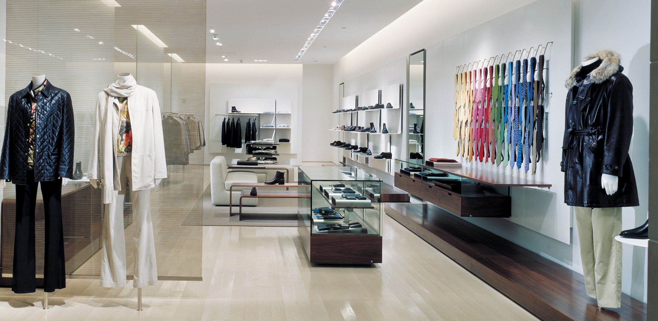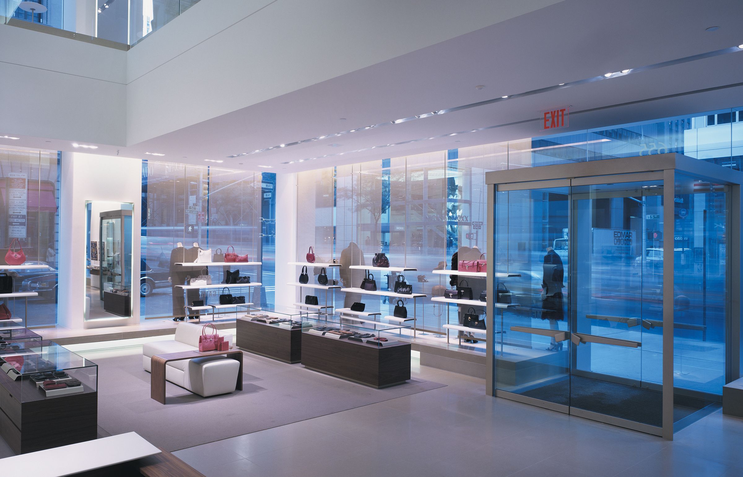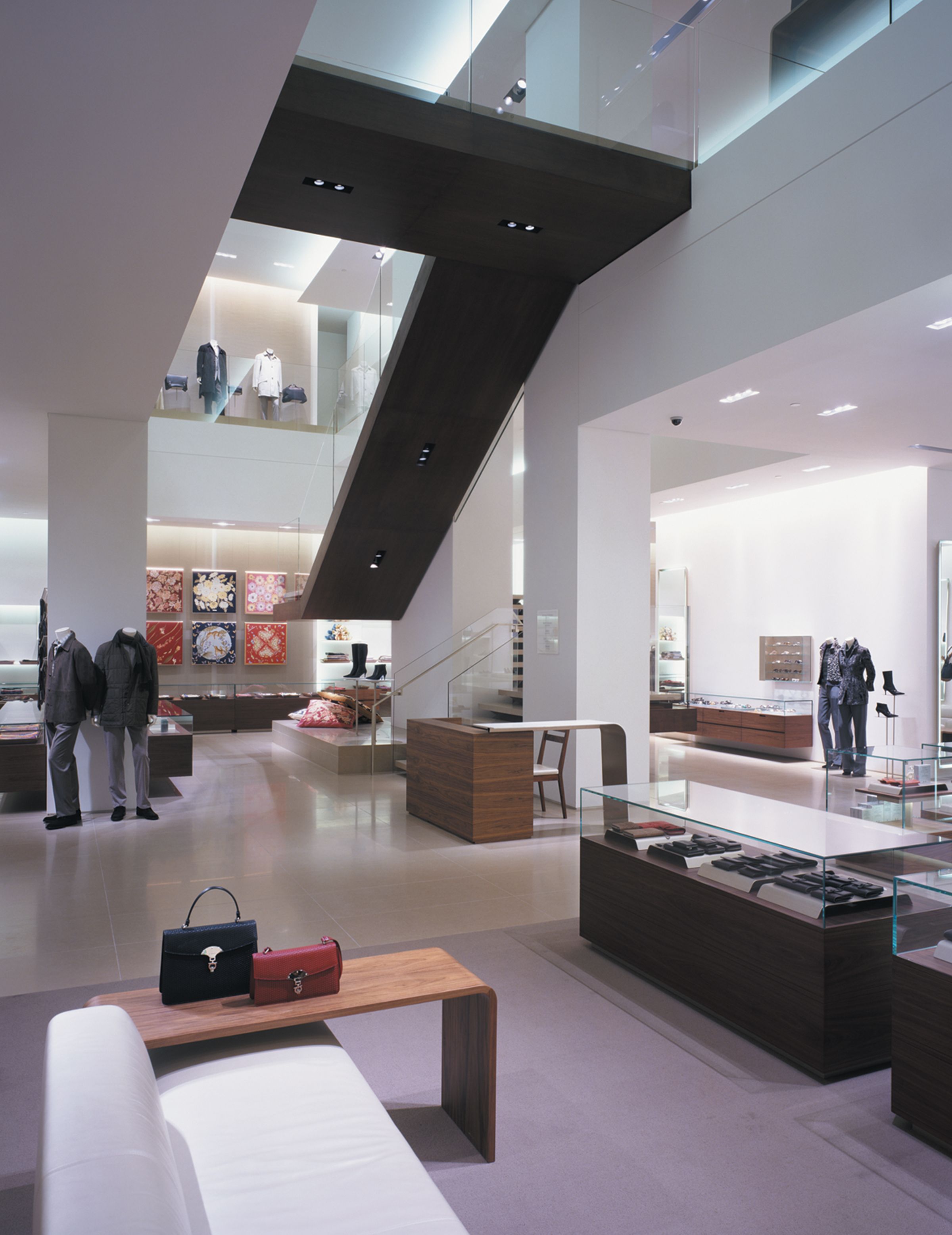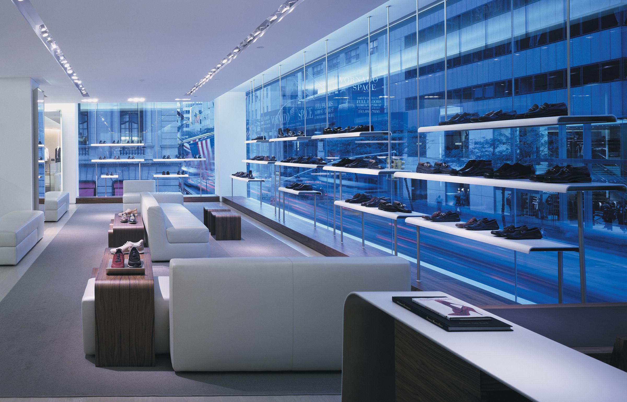 One element of a multi-year collaboration with the Italian fashion house that resulted in new locations across the U.S. — including at Long Island’s Americana Manhasset — the design of this 20,000-square-foot, bi-level flagship on Manhattan’s Fifth Avenue inaugurated a new generation of stateside Salvatore Ferragamo stores. The flagship seamlessly melds two existing retail spaces across a pair of prominent buildings, creating a singularly grand Ferragamo environment. Containing men’s and women’s collections, state-of-the-art fitting rooms, a custom-footwear atelier and a gallery, the space draws customers in with enticing views down its bays and such dramatic features as a wood, stone and glass staircase that wraps a monolithic stone column. This terminates in a bridge connecting the store’s east and west sides, leading to the men’s footwear salon in a glass-enclosed aerie overlooking Fifth Avenue.