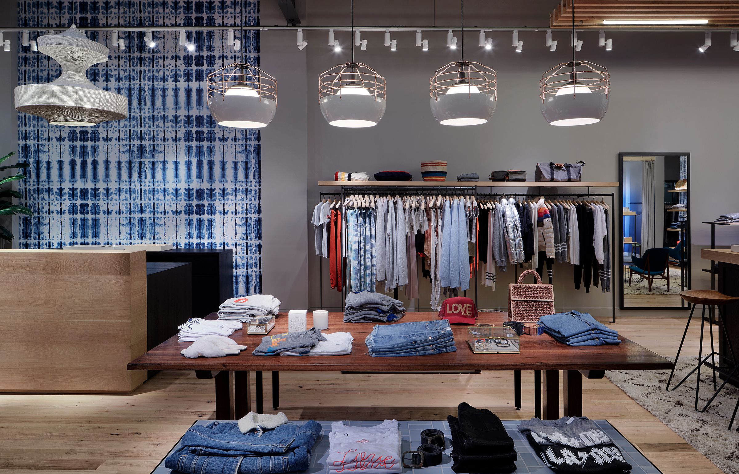 js was commissioned to develop the retail concept for a new lifestyle brand, The Westside, which carries casual clothing for women and men as well as lifestyle products for home and body. The palate and ambience is inspired by the laid-back luxe feel of oceanfront California communities. Fixtures of natural oak and oil-rubbed metal are set among light grey and blue tones. js custom designed wallpaper inspired by tie-dyed fabrics, woven light fixtures and found objects complete the easy residential feel. A national rollout of the retail stores, which range in size from 3000-6000 sf is underway.